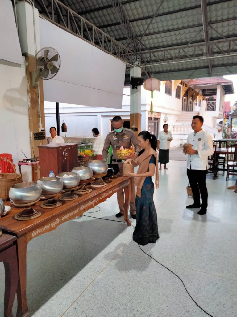 พ.ต.อ.ปรีชา สารถี ผกก.สภ.ลำทะเมนชัย พ.ต.ต.พิสูจน์ นันทศักดิ์ภิญโญ สวปฯ พร้อมด้วย ร.ต.ต.ยุทธนา กองเพชร เเละ ด.ต.สมหมาย คอพิมาย จนท.ชุด ชมส.ว.4 ร่วมกิจกรรมทำบุญตักบาตร ร่วมกับ นางสาวณิชาพิชญ์ รักษาภักดี นายอำเภอลำทะเมนชัยจนท.ฝ่ายปกครอง ผู้นำชุมชนหมู่บ้าน ต.ช่องแมวฯ ณ.ศาลาการเปรียญวัดศิริโภคาภิรมณ์ (วัดบ้านช่องแมว )ม.3 ต.ช่องแมวฯ อ.ลำทะเมนชัย จ.นครราชสีมา
