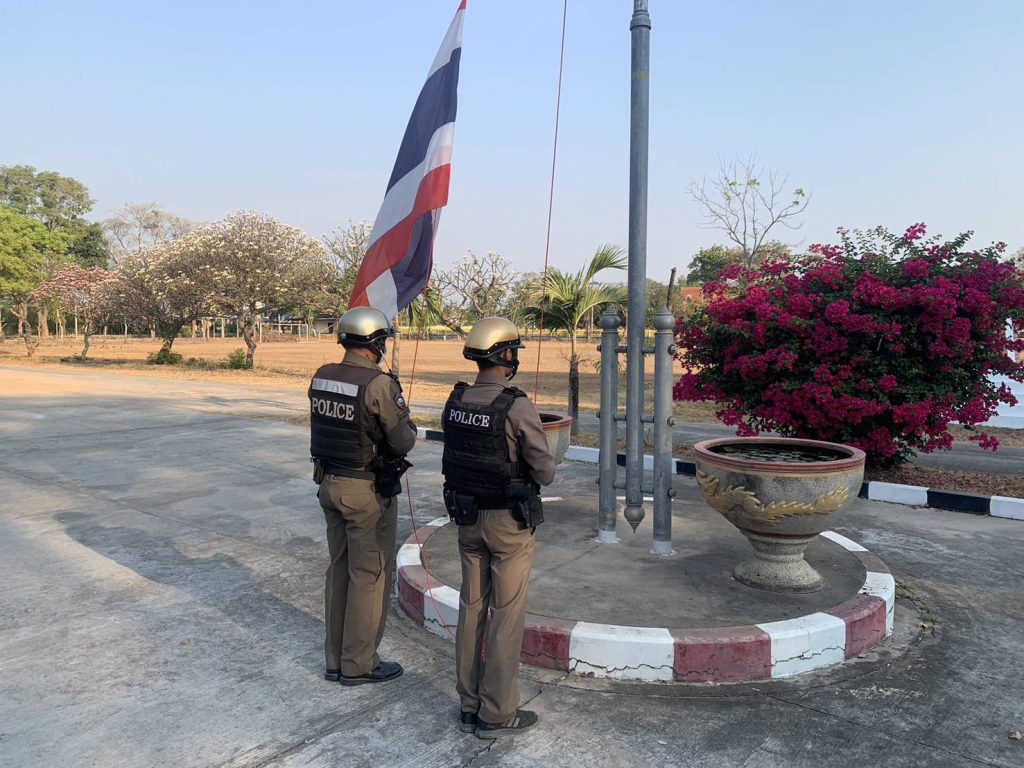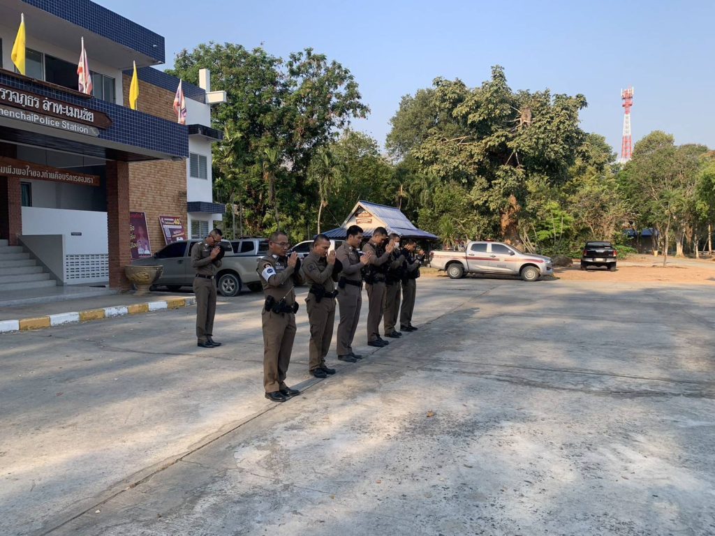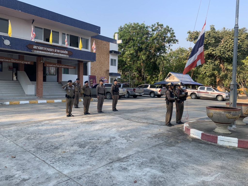 ได้เรียกแถวสายตรวจ เพื่อเคารพธงชาติพร้อมอบรมปล่อยแถวสายตรวจและชี้แจงเน้นย้ำข้อราชการ