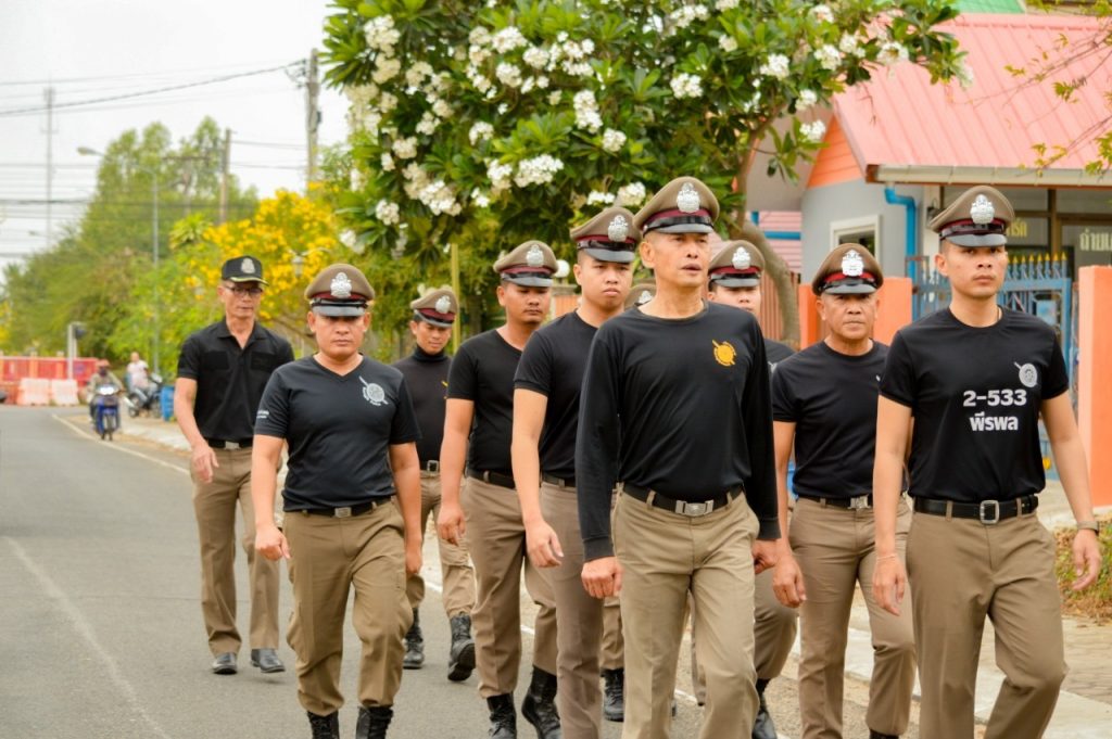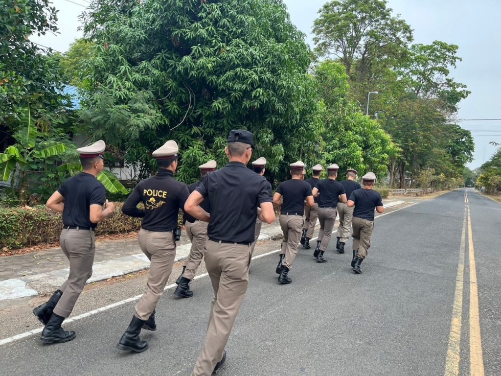 เเละกำลังเจ้าหน้าที่ได้จัดเเถววิ่งภายในเขตุพื้นที่เพื่อเช็คกำลังความพร้อมเเ