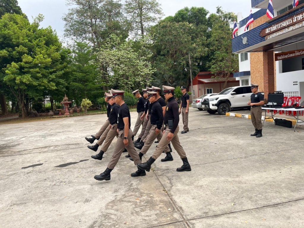 พ.ต.ต.พิสูจน์ นันทศักดิ์ภิญโญ สวป.ฯ สภ.ลำทะเมนชัย ได้ตรวจสอบกำลังพลเเละฝึกทบทวนระเบียบเเถวบุคคลท่ามือเปล่า