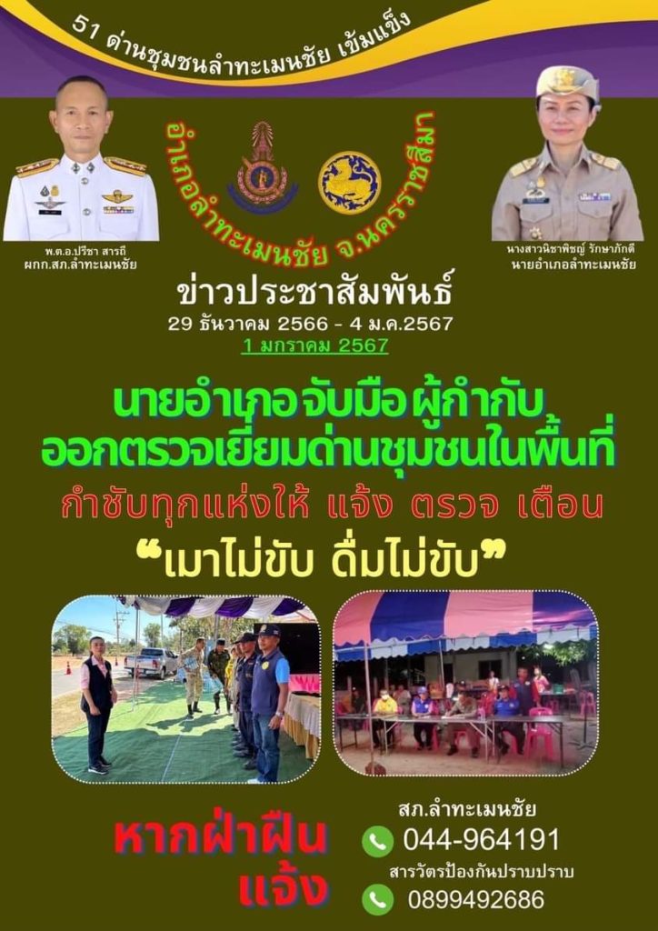 ข่าวประชาสัมพันธ์อำเภอลำทะเมนชัย เทศกาลปีใหม่ 2567 7 วันอันตราย ( 29 ธ.ค.2566 – 4 ม.ค.2567 )