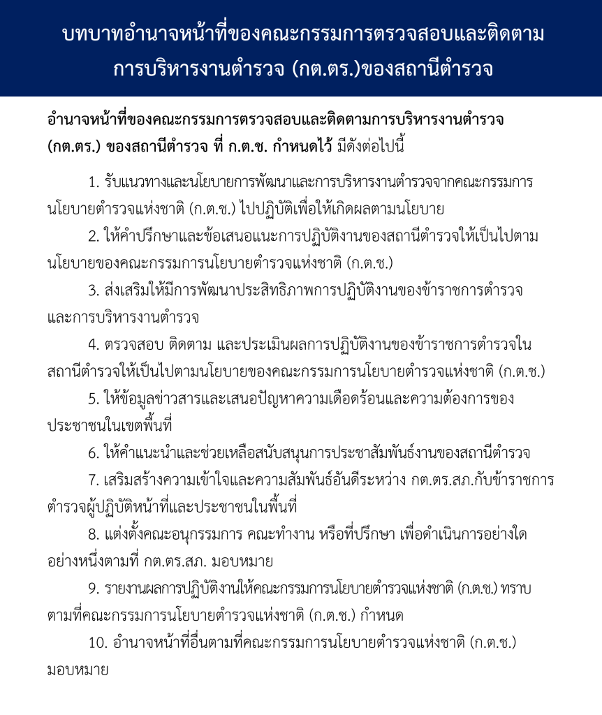 บทบาท อำนาจหน้าที่คณะกรรมการตรวจสอบและติดตามการบริหารงานตำรวจ (กต.ตร.) ของสถานีตำรวจ